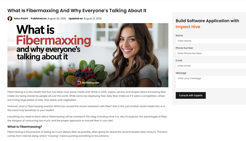 Devify Blog is a modern blogging platform designed to deliver a clean, structured, and distraction-free reading experience. The goal of the project was to create a content-focused interface that enhances readability while maintaining strong SEO performance and intuitive navigation.